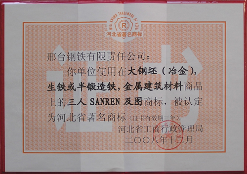 The Three Person brand was awarded the Famous trademarks of Hebei.