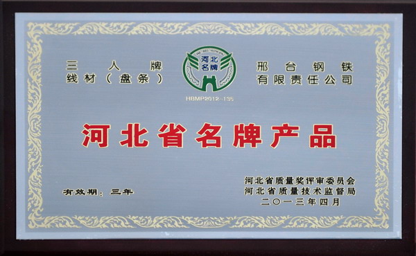 邢鋼線材(盤條)獲省名牌產(chǎn)品 公司獲省質(zhì)量效益型先進企業(yè)
