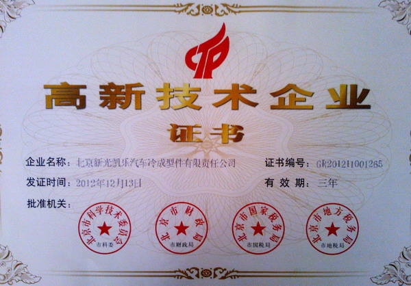 日前,北京新光凱樂公司榮獲國家高新技術企業(yè)稱號,同時取得國家高新技術企業(yè)證書。