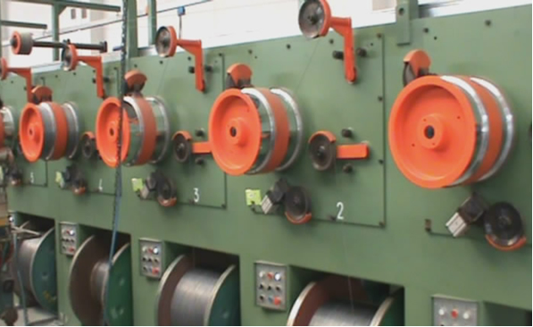 1、放線:具有積線功能的放線機(jī),共40組,一字排開(kāi),同步工作。