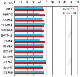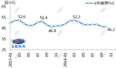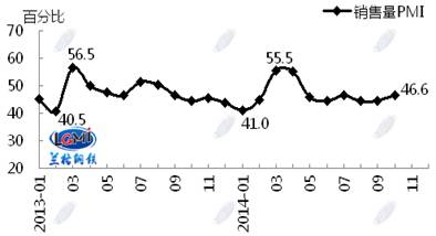 蘭格鋼鐵信息研究中心統(tǒng)計發(fā)布2014年10月鋼鐵流通業(yè)PMI總指數(shù)為47.8,環(huán)比微升0.6個百分點(diǎn)(見圖1),顯示鋼鐵流通市場活躍度略有好轉(zhuǎn)。從各項分指數(shù)看,10月份鋼鋼鐵流通業(yè)PMI調(diào)查的10項分指數(shù)5升5降。其中,企業(yè)銷量增加,下游訂單增加,但企業(yè)對后市較為謹(jǐn)慎,采購意愿未增(見圖2)。總體判斷11月鋼鐵流通市場需求景氣微升。