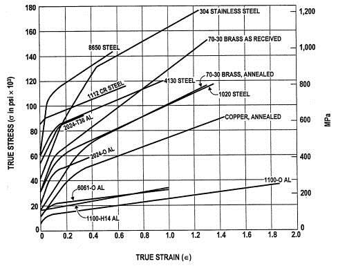 多種真實(shí)金屬材料的真應(yīng)力真應(yīng)變曲線