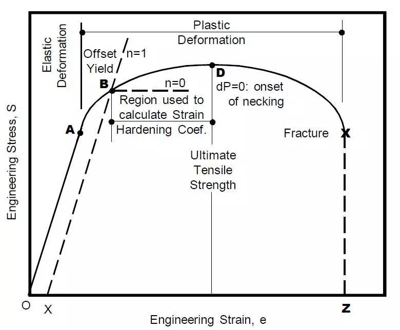 典型拉伸曲線,帶有形變硬化
