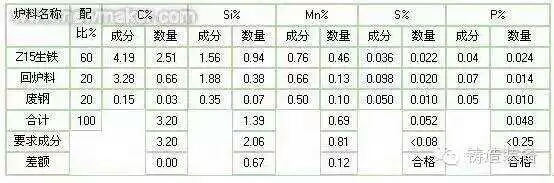 各種牌號(hào)鑄鐵要求的化學(xué)成分隨鑄件壁厚和鑄造方法而異。例如,HT20-40鑄鐵的化學(xué)成分范圍為:C3.3-3.5%、Si1.5-2.0%、Mn0.5-0.8%、S<0.12%、P<0.25%。用于配置HT20-40的金屬料平均成分如表3。