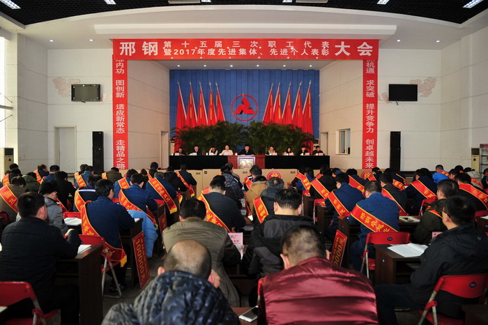 1月16日上午8時,在莊嚴的《國歌》聲中,公司第十五屆三次職工代表大會暨2017年度先進集體、先進個人表彰會在公司會議中心隆重召開。公司領導侯月華、王春雨、王郢、盧纓、喬國軍、胡黎寧、劉宏偉、梁鋒、王明合出席了會議。邢臺市總工會副主席張春雷應邀到會并致詞。大會由公司工會主席梁鋒主持。