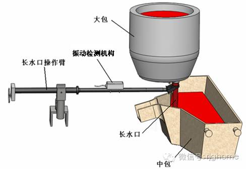在大包長(zhǎng)套管的安裝上,人為控制套管的傾斜角度,以向沖擊區(qū)外墻的反方向傾斜5-10°為參考,可將沖擊區(qū)區(qū)域的流場(chǎng)漩渦移至中間包中部區(qū)域,避免侵蝕。