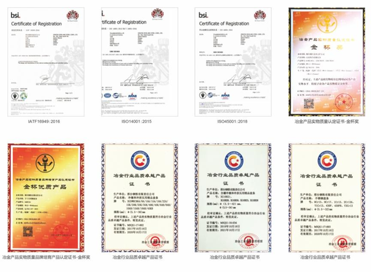 1999年邢鋼開始推行質(zhì)量管理體系,成為最早一批通GB/T19000族標(biāo)準(zhǔn)過認(rèn)證的鋼企之一。2006年,作為全國首批鋼鐵企業(yè),邢鋼全流程通過了英標(biāo)認(rèn)證公司TS16949汽車行業(yè)質(zhì)量管理體系。產(chǎn)品研發(fā)也是芝麻開花節(jié)節(jié)高,通過創(chuàng)新研發(fā)模式相繼開發(fā)了汽車用鋼、鐵路用鋼,高強橋梁用鋼,耐候鋼、重熔鋼等產(chǎn)品,涵蓋冷鐓鋼、彈簧鋼、軸承鋼、純鐵、預(yù)應(yīng)力鋼、易切削鋼、工模具鋼、耐候鋼等十八大系列。如今的邢鋼已經(jīng)通過EMS,OHSMS等9個體系認(rèn)證!