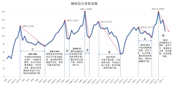 圖1 1990年以來我國(guó)鋼材價(jià)格綜合指數(shù)變化趨勢(shì)