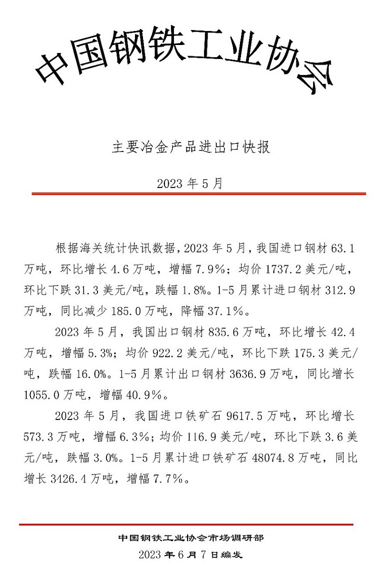來源:中國鋼鐵工業(yè)協(xié)會 發(fā)布時間:2023年06月09日 點擊數(shù):