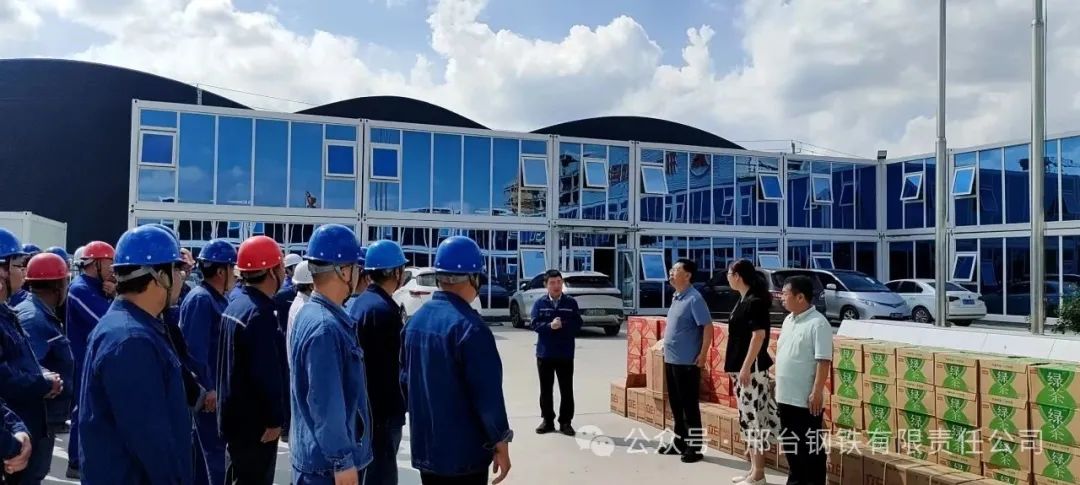 新廠房里,起重機(jī)下,工人們正一絲不茍地進(jìn)行設(shè)備安裝、調(diào)試。8月22日,邢臺市總工會黨組成員、經(jīng)審委主任龐蘇、威縣總工會主席岳朝軒等一行來到邢鋼搬遷項目建設(shè)工地,為連日來被潮熱天氣“烤驗”的建設(shè)者們送來“清涼”大禮包和真摯的慰問。公司副總經(jīng)理馬保良出席了“送清涼”慰問品發(fā)放儀式。