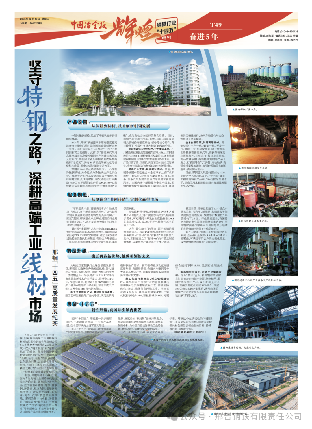 5年,在歷史長(zhǎng)河中不過一瞬,但對(duì)專注高端工業(yè)用特鋼線材領(lǐng)域的邢臺(tái)鋼鐵有限責(zé)任公司(以下簡(jiǎn)稱邢鋼)而言,卻足以完成一次從“精工制造”到“定制化賦能”的蝶變。作為中國(guó)特鋼線材領(lǐng)域的“單打冠軍”,邢鋼堅(jiān)持“做精、做專、做強(qiáng)”的發(fā)展戰(zhàn)略,以創(chuàng)新為引擎,以定制化服務(wù)為紐帶,開創(chuàng)了一條專業(yè)化、高端化精品之路,在“十四五”期間交出了一份厚重的高質(zhì)量發(fā)展答卷。